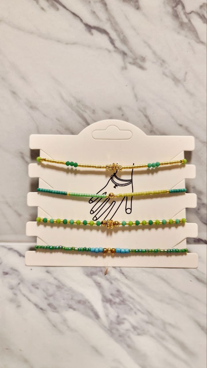 Diseño de Capas: Las cuatro pulseras varían en grosor y patrón, permitiendo un efecto de capas (stacking) perfectamente equilibrado y armonioso.